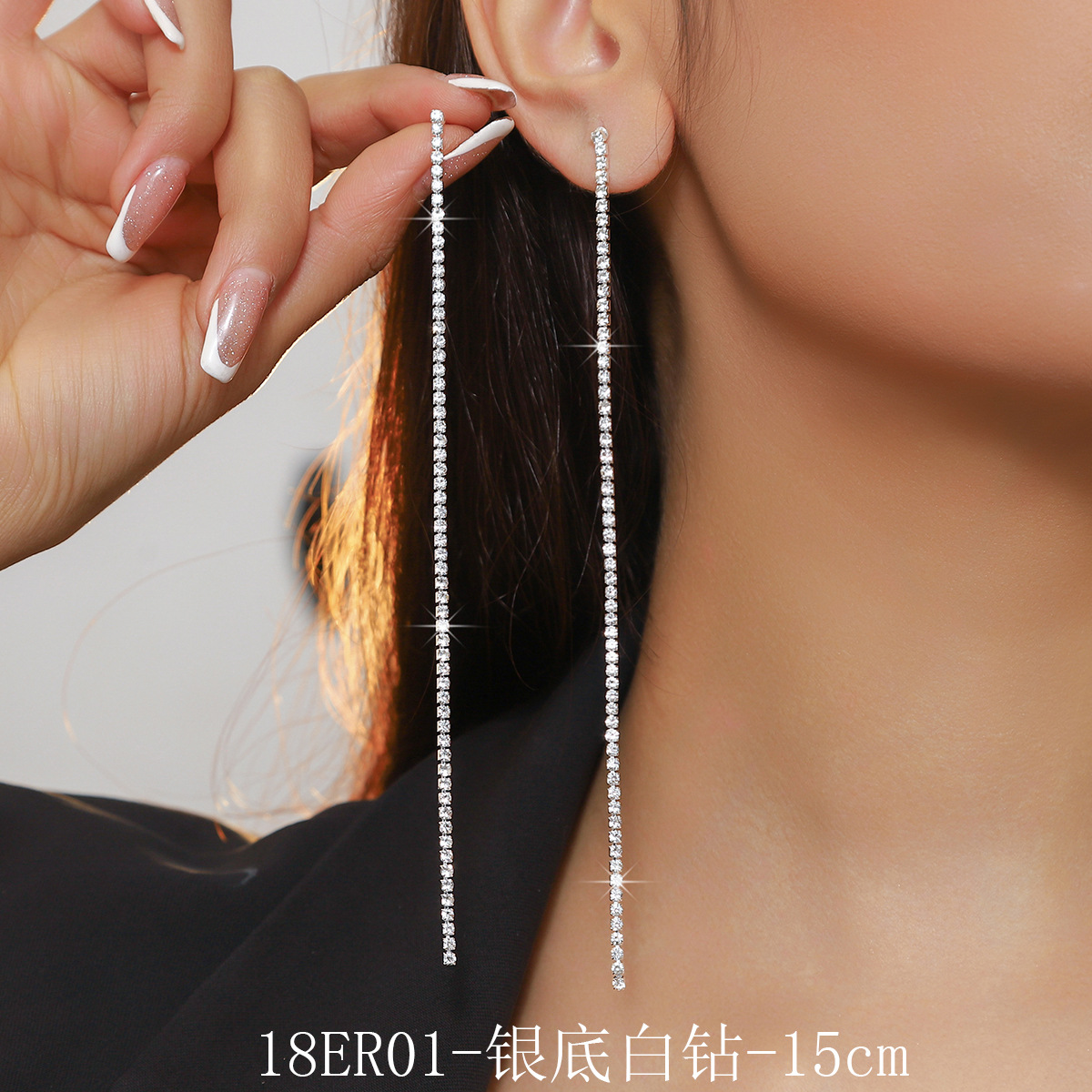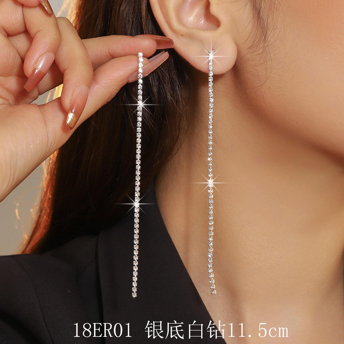 jxer179-rhinestone tassel earrings-silver