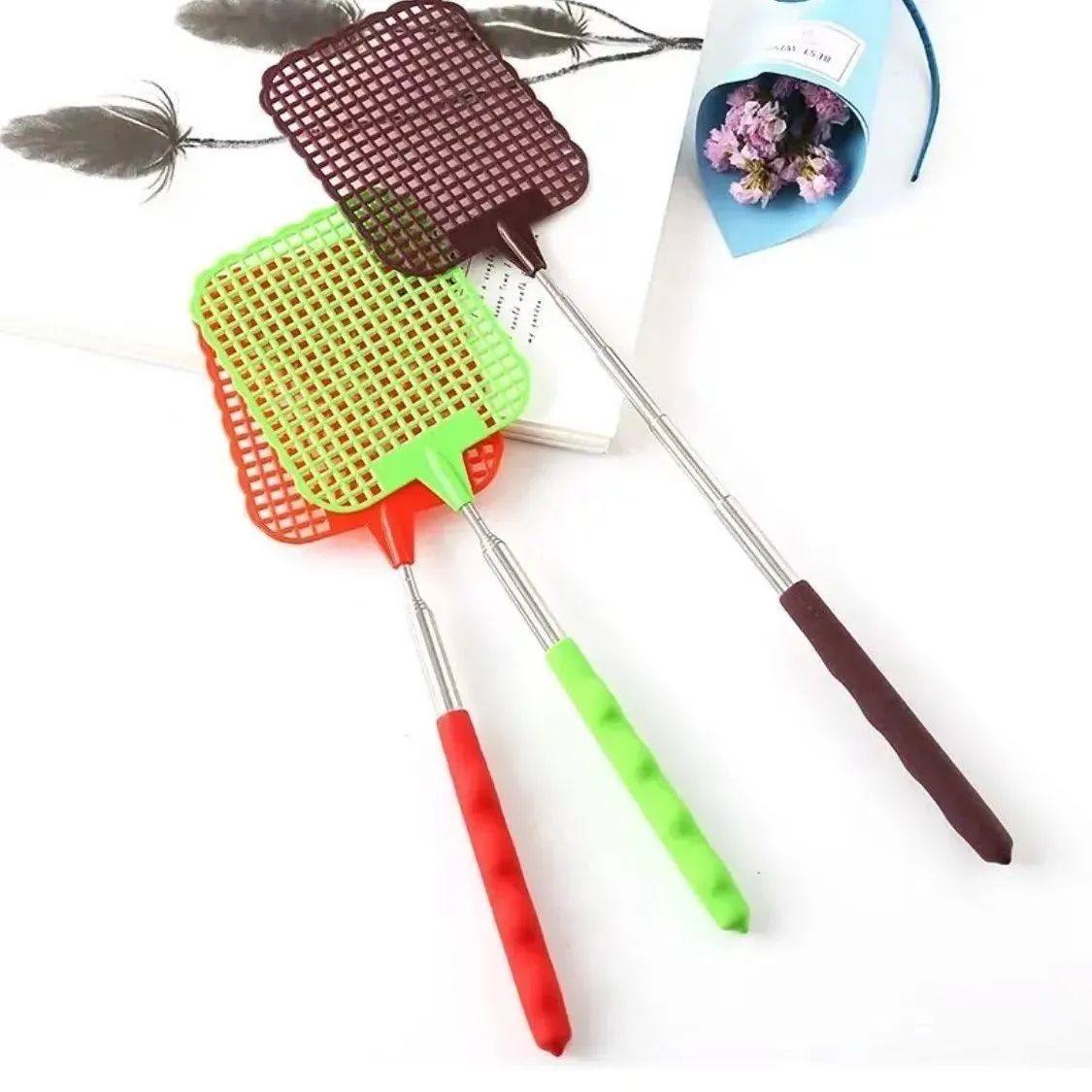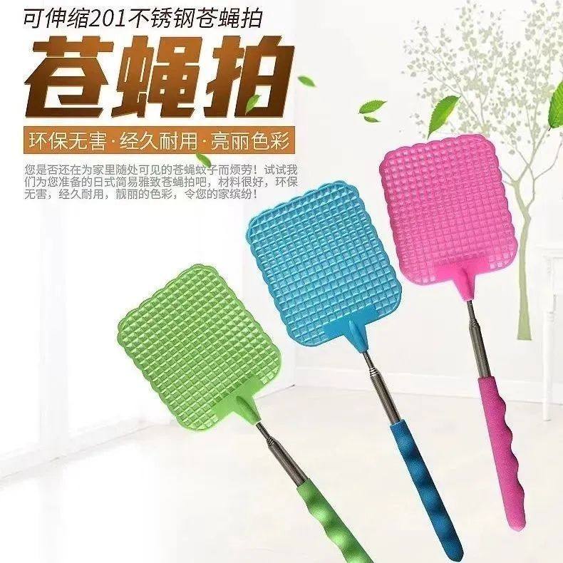household retractable fly swatter creative extended handle mosquito swatter thickened mini multi-functional stainless steel mosquito repellent racket