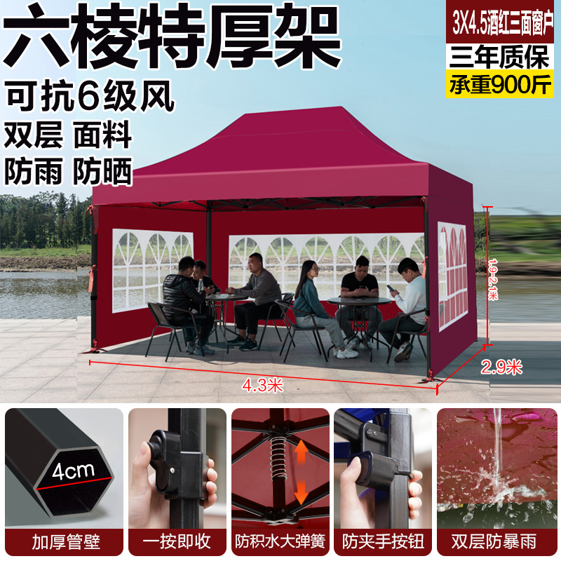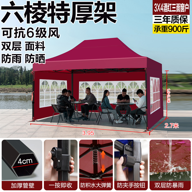 extra thick black hexagonal 3x4 wine red +4 windows [rain-proof windproof and cold-proof]]