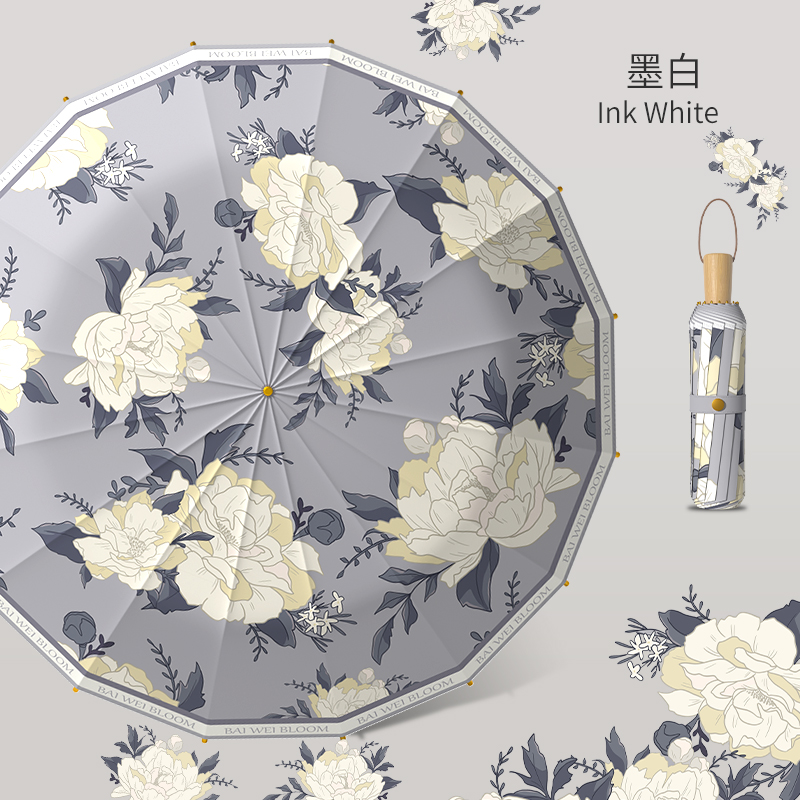 flower original wooden handle☀ink white [sun protection⭐thickened color plastic⭐wind-resistant skeleton]]
