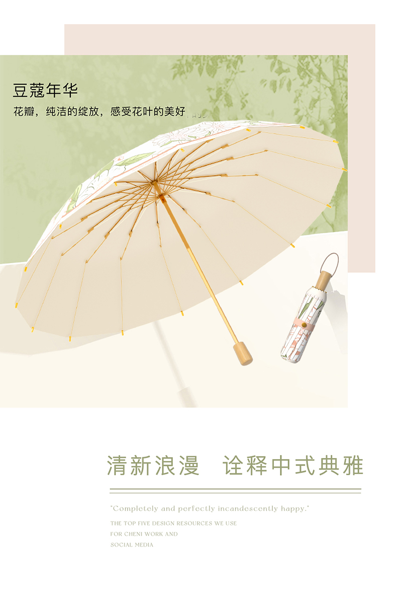 flower original wooden handle☀taoyao [sun protection⭐thickened color plastic⭐wind-resistant skeleton]]