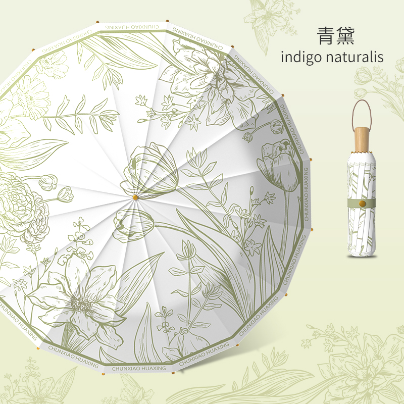 flower original wooden handle☀indigo [sun protection⭐thickened color plastic⭐wind-resistant skeleton]]