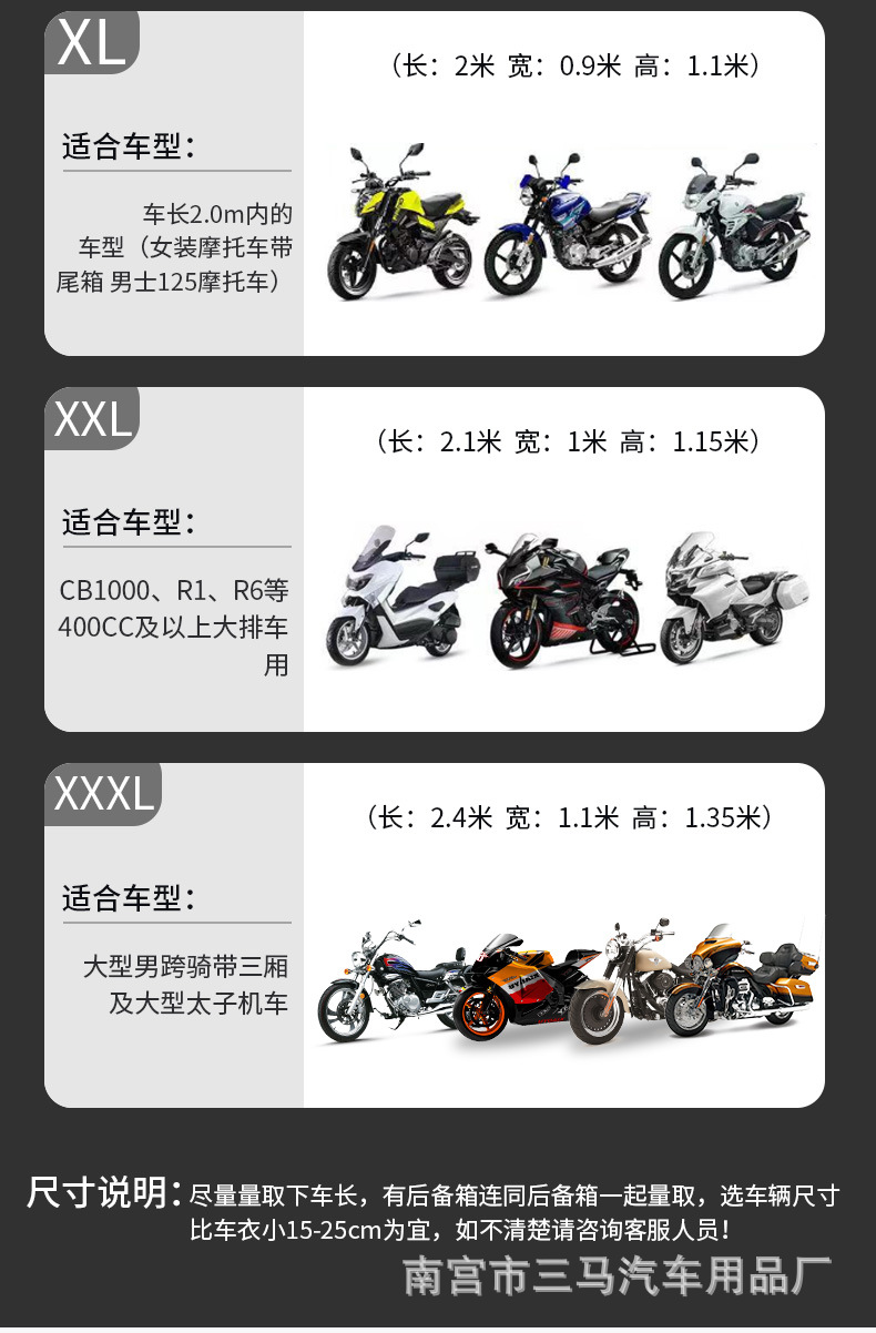 | 3xl (special for motorcycle with three boxes) | CN¥ 32.57 | 9999 piece available |
