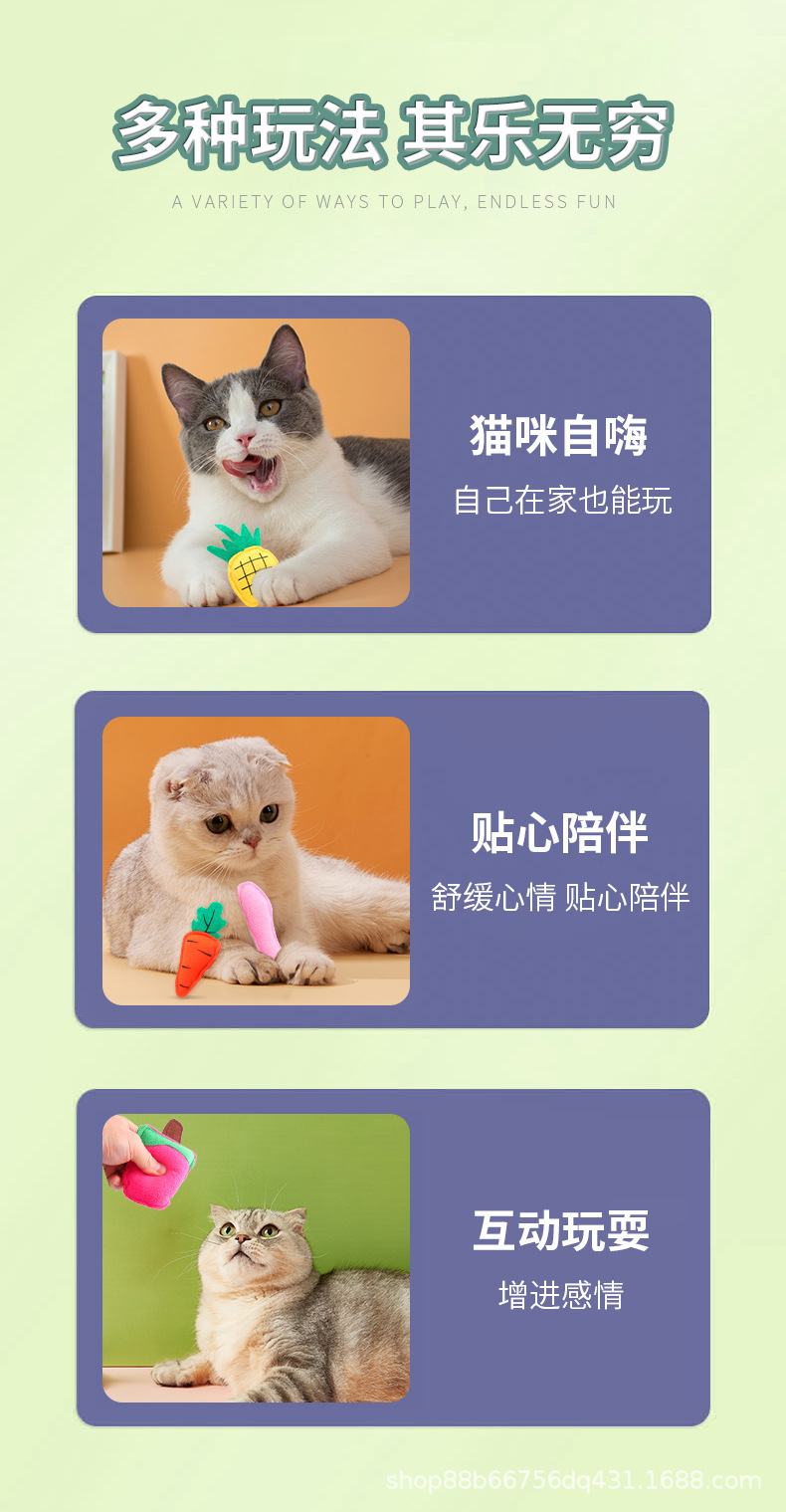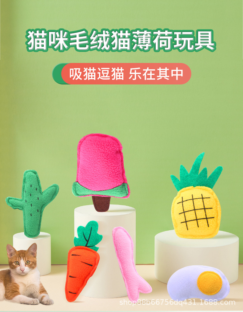 pet supplies factory wholesale fruit plush toys containing catnip self-hi fun scratch-resistant toys