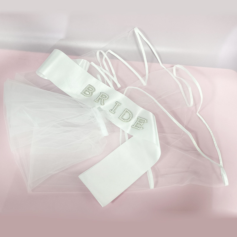 bride beaded diamond letter shoulder strap veil