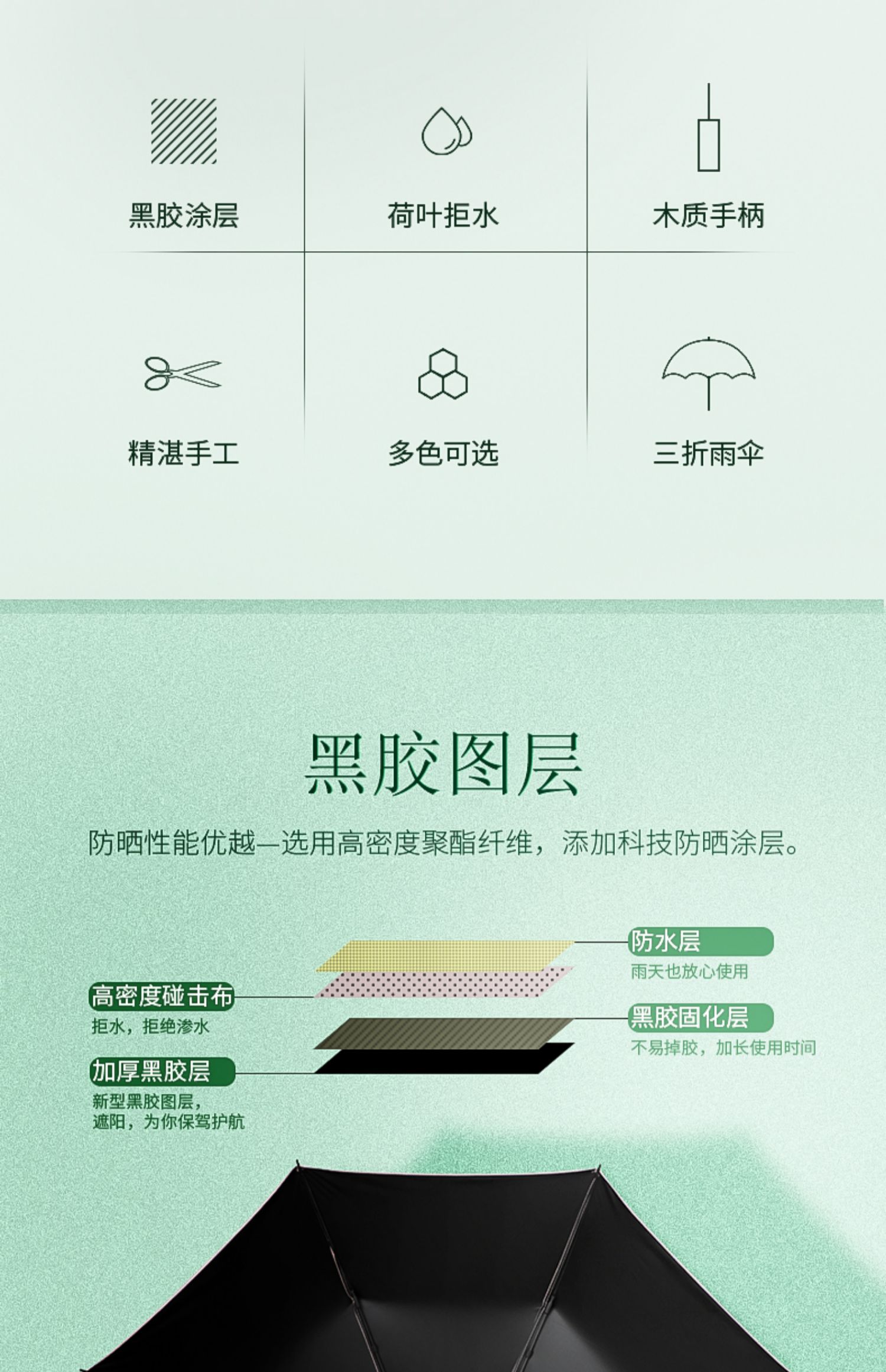 folding wooden handle matcha green