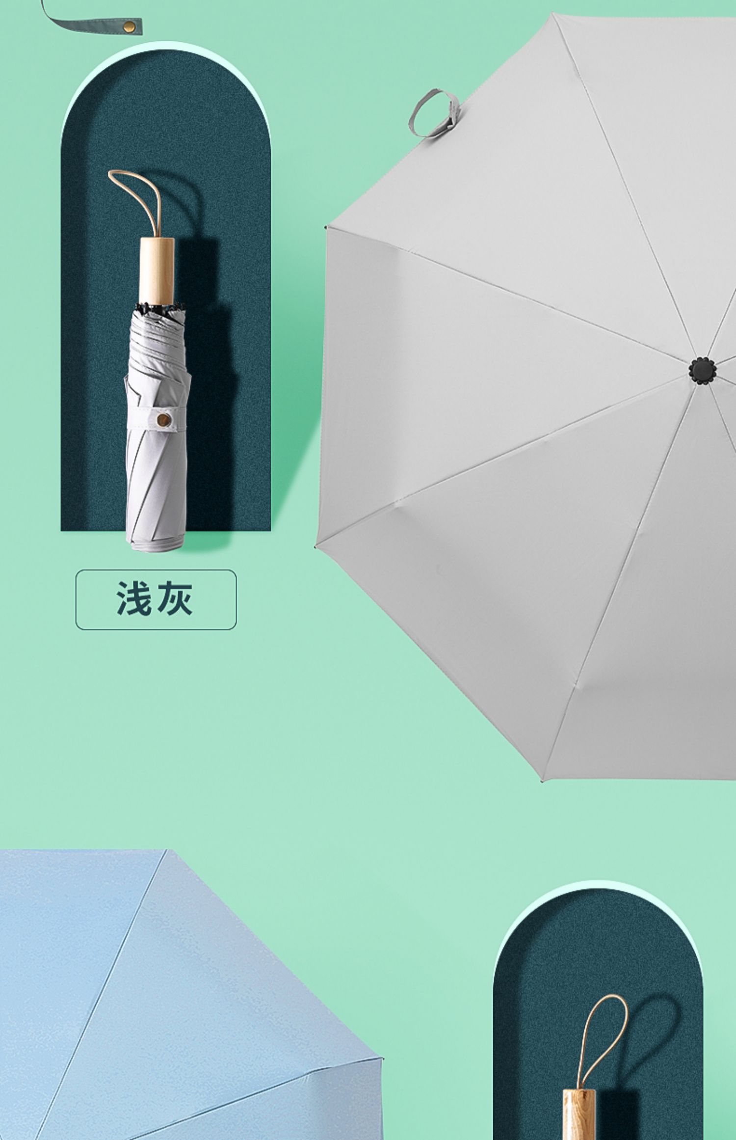folding wooden handle light gray