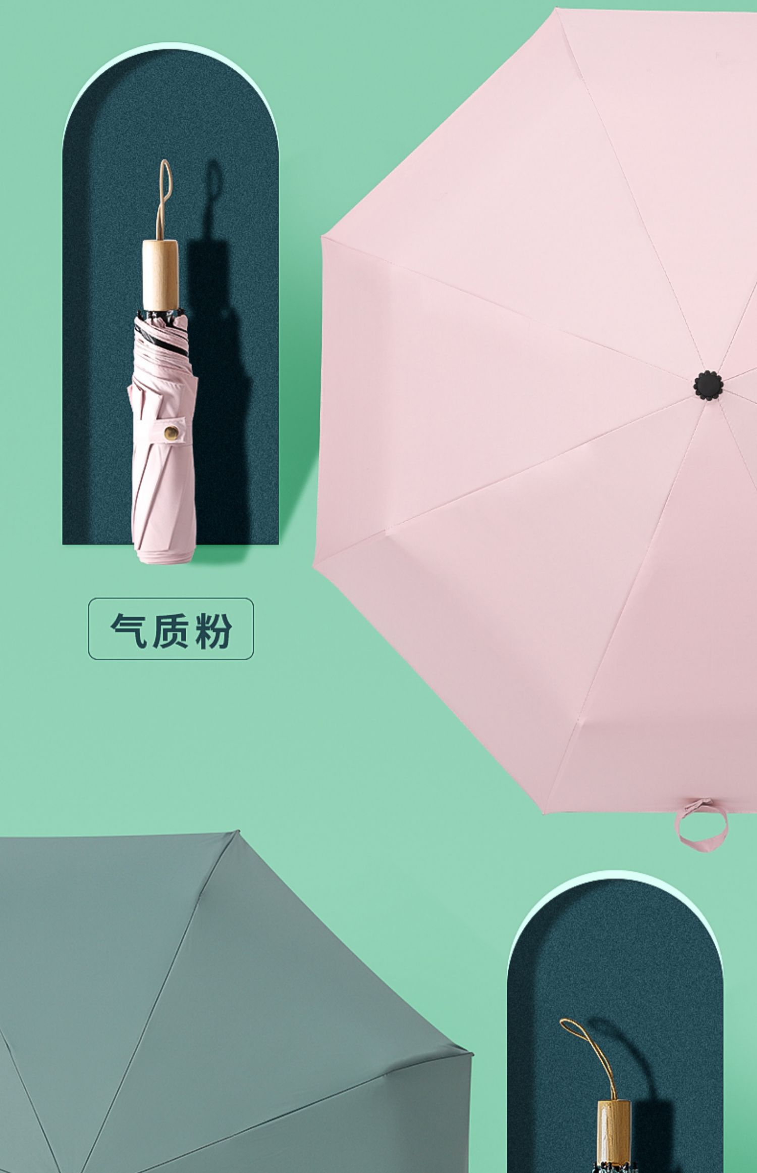 folding wooden handle temperament pink