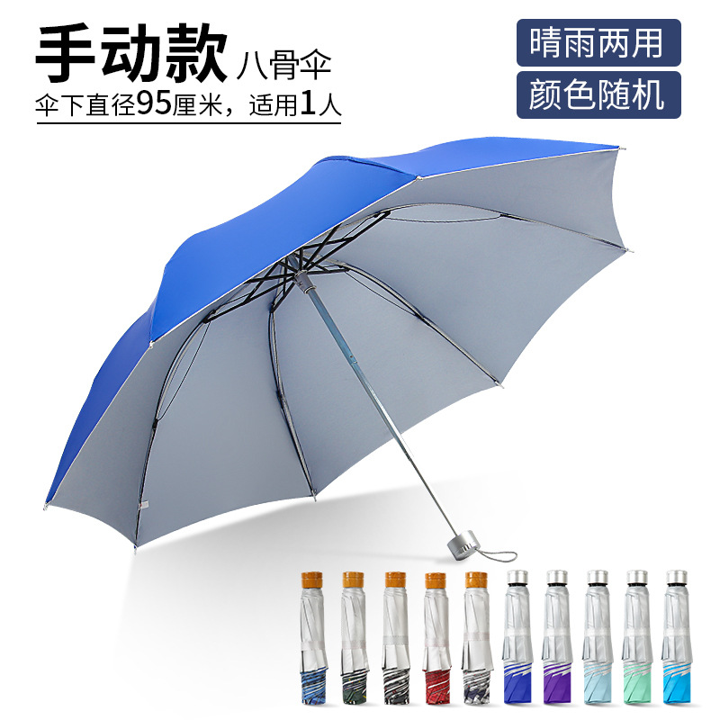 8 bone manual silver plastic umbrella (random color delivery)
