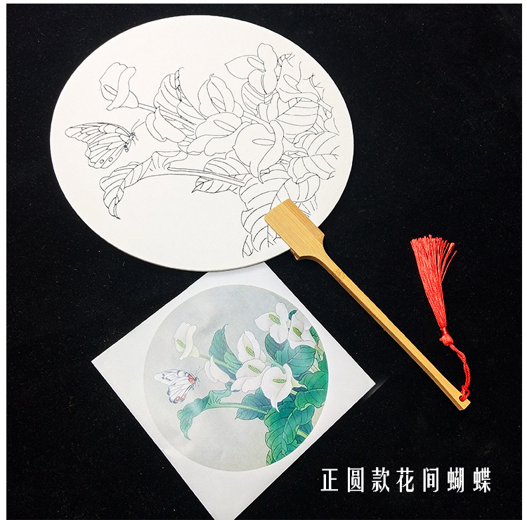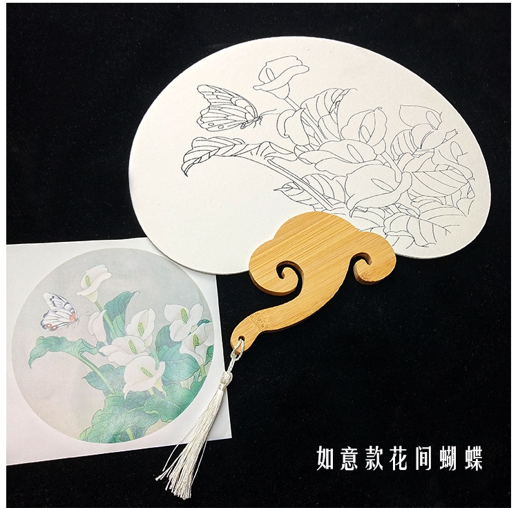 ruyi flower butterfly (circular fan + pigment)