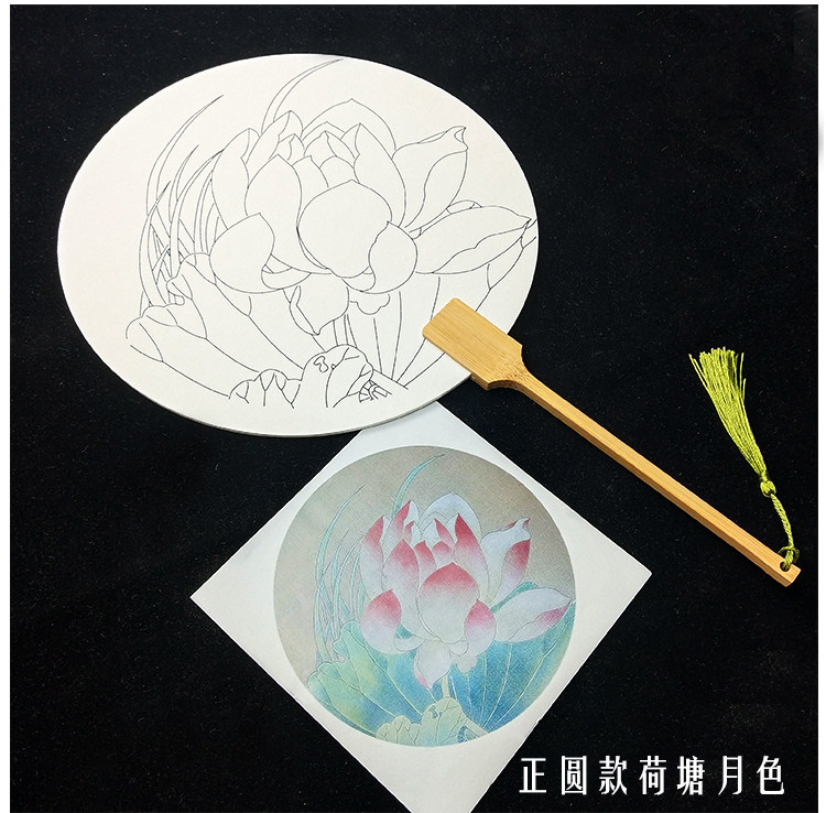 perfect circle lotus pond moonlight (circular fan + pigment)