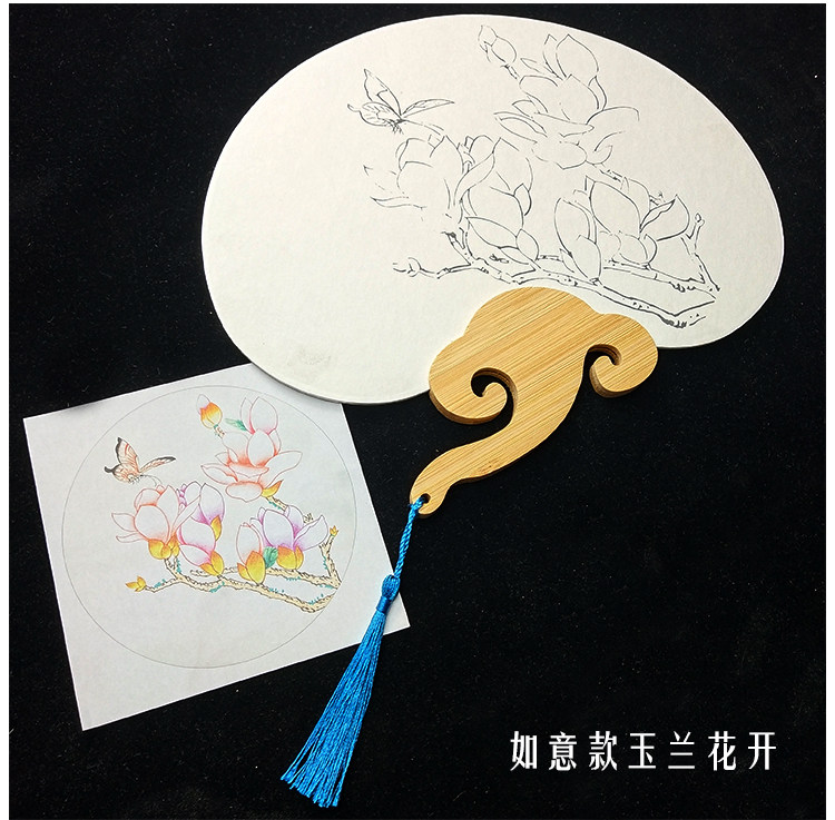 ruyi magnolia blossoms (circular fan + pigment)