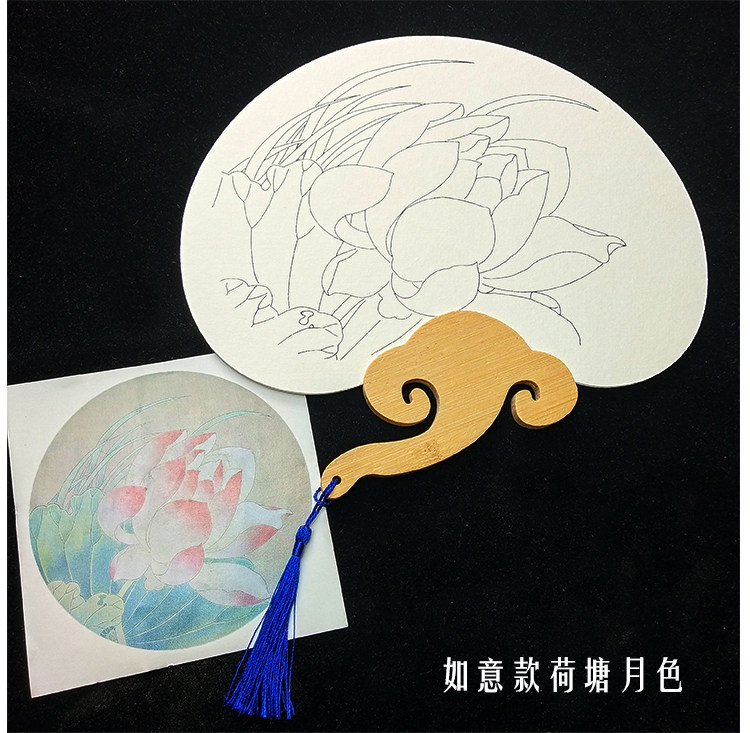ruyi lotus pond moonlight (circular fan + paint)