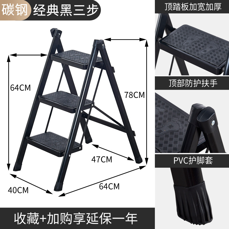 black classic black three-step ladder