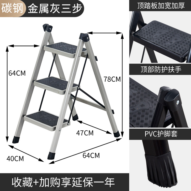 gray metallic gray three-step ladder