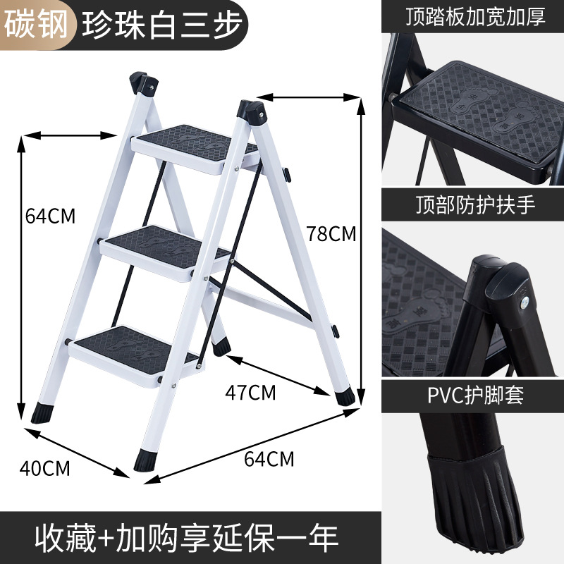 white pearl white three-step ladder