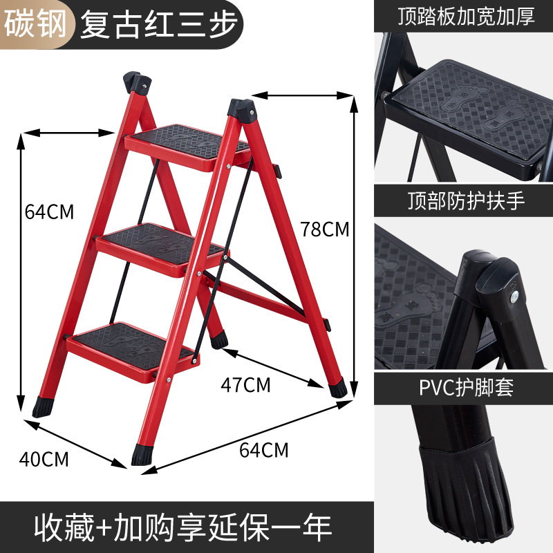 red retro red three-step ladder