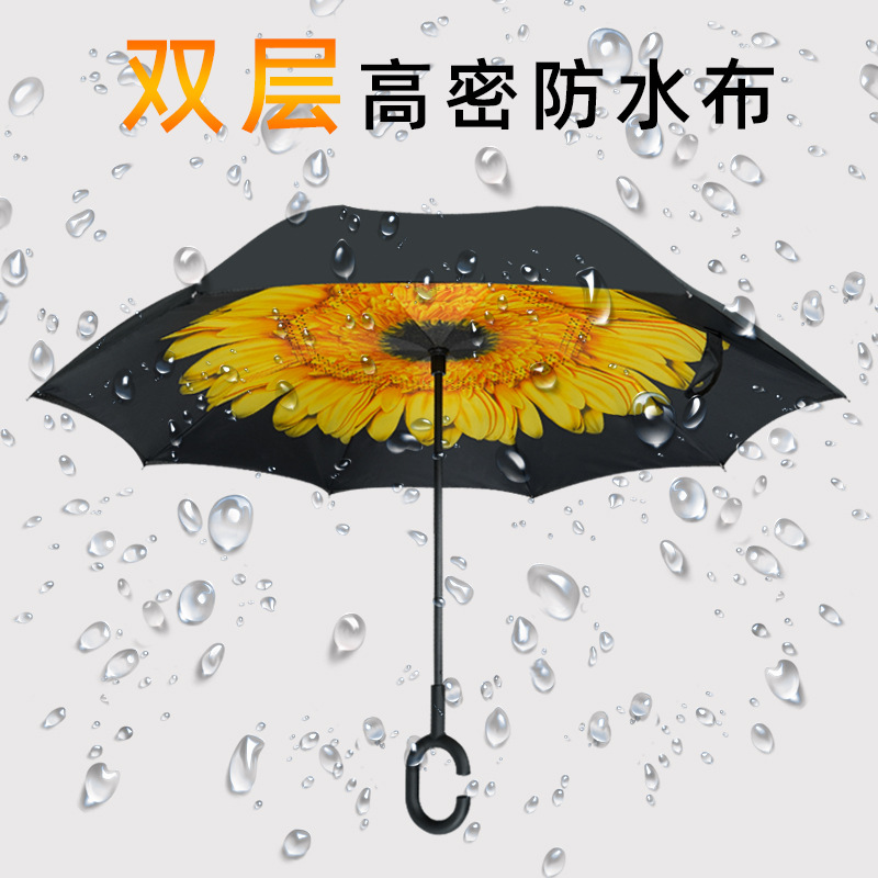 manual double-layer reverse long handle umbrella-sunflower