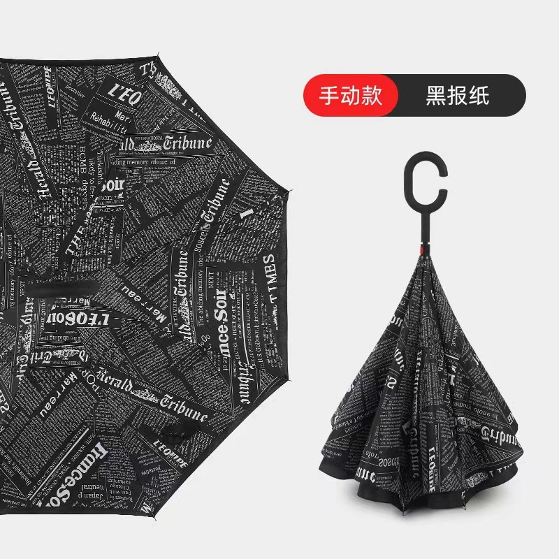 manual double-layer reverse long handle umbrella-black newspaper