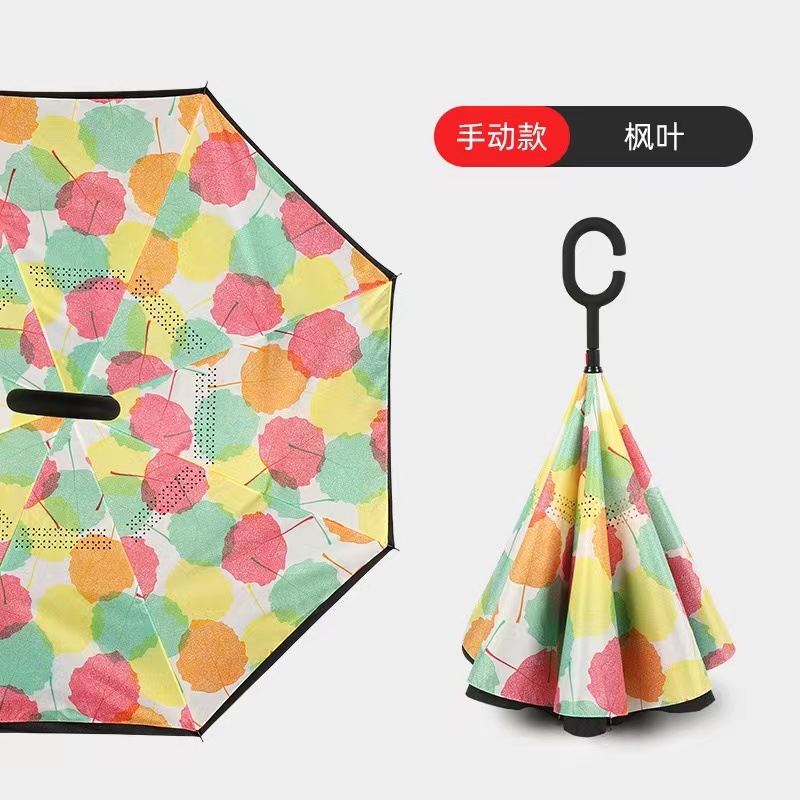 manual double-layer reverse long handle umbrella-maple leaf
