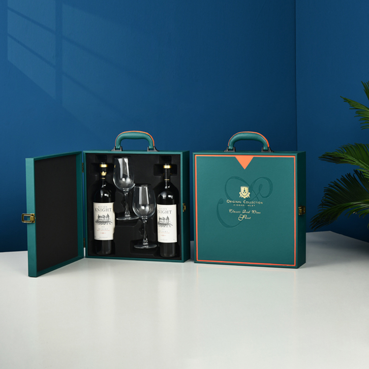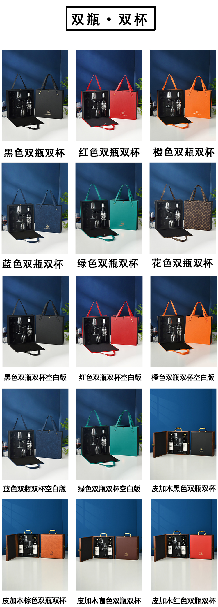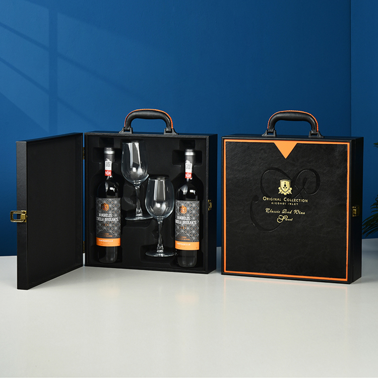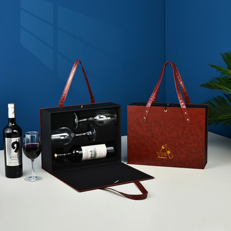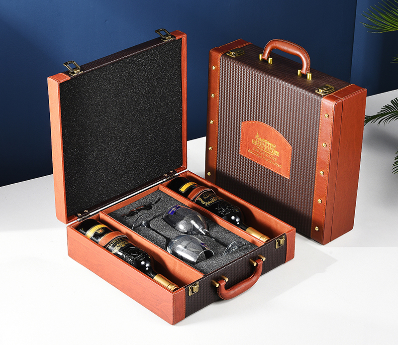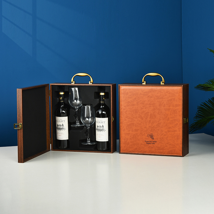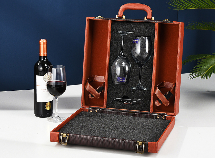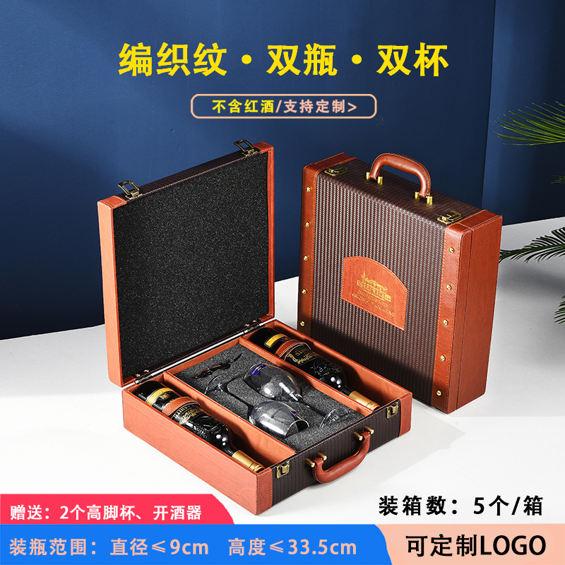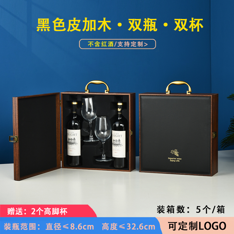 ▤ ▤ ▤★★leather and wood red double bottles with 2 wine glasses★★...