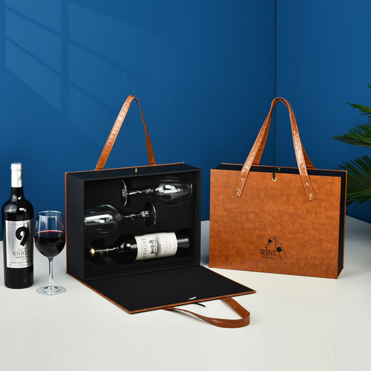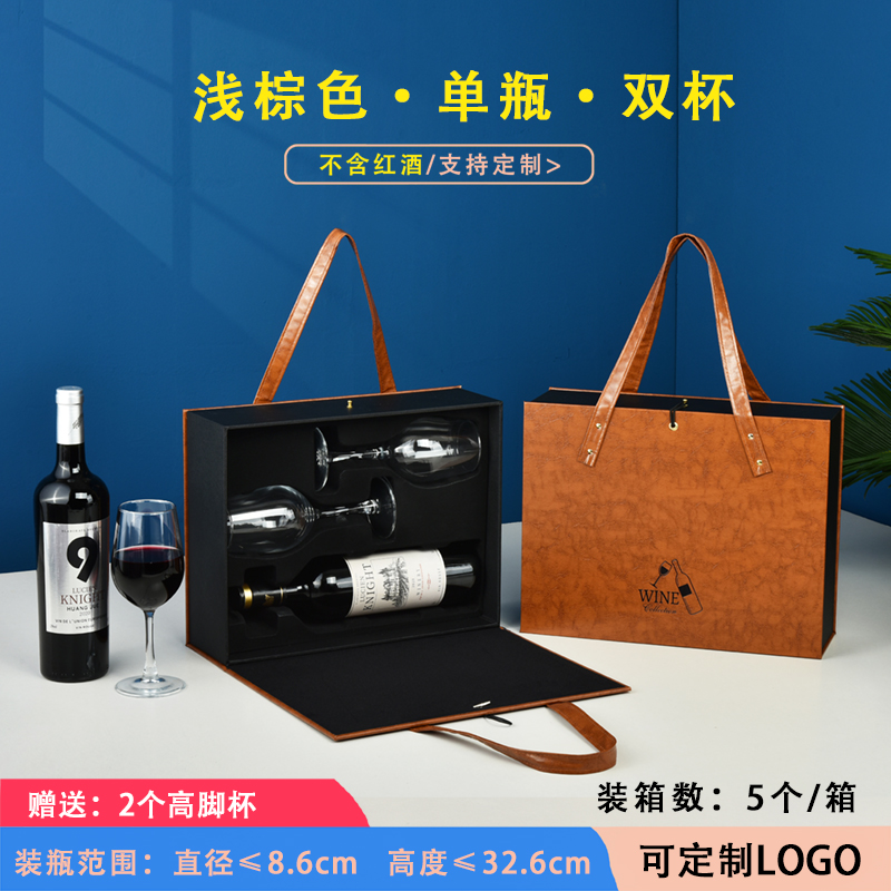 ▤ ▤ ▤★★leather and wood brown double with cup for free 2 wine glasses★★...