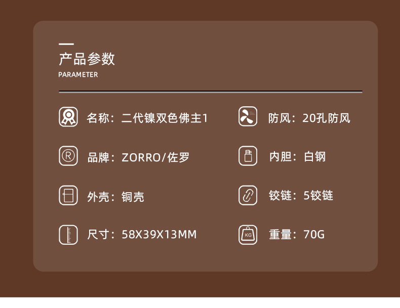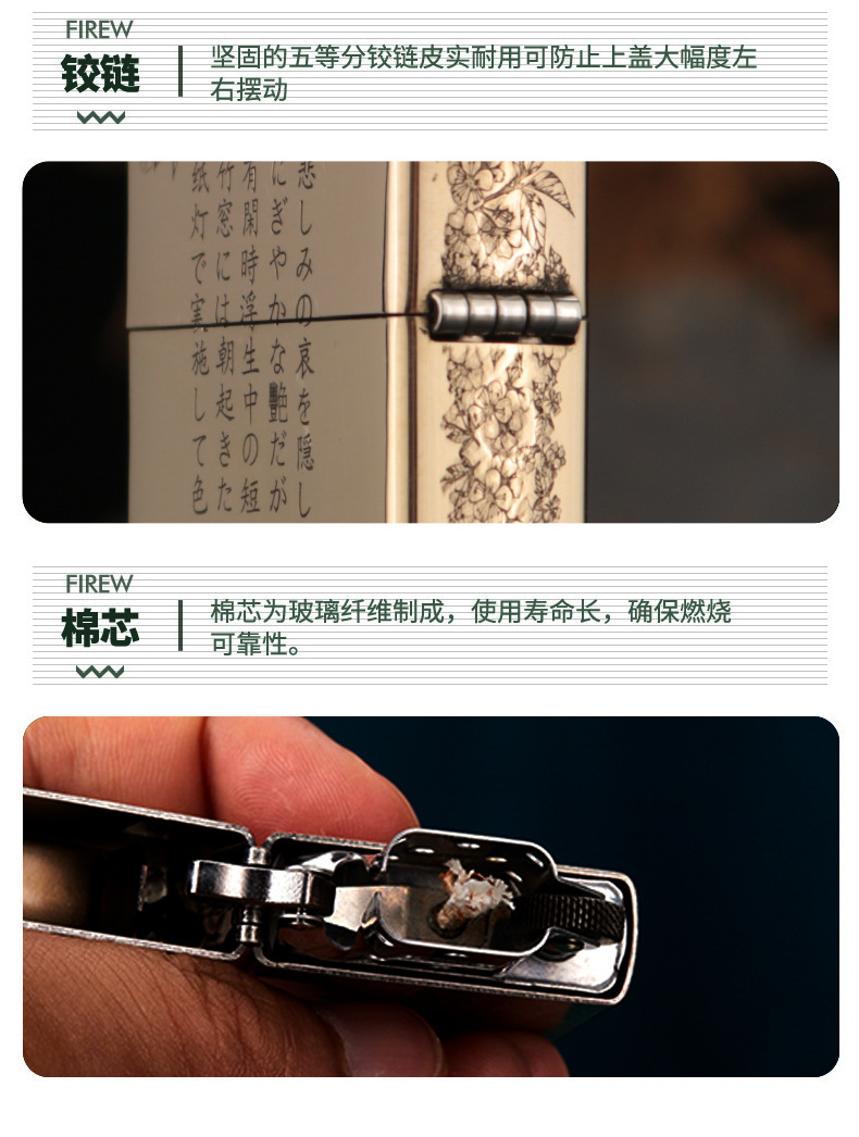 | lighter + box + 133ml oil + flint cotton core | ¥85.0 | 3 piece available |