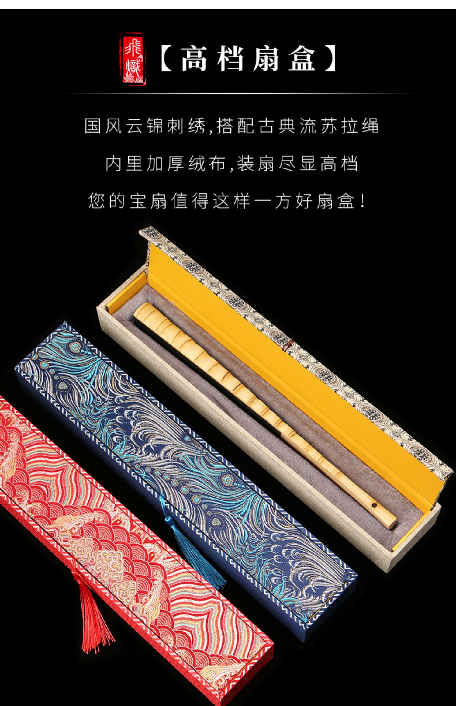 red background hailang brocade fan control stem [10-inch folding fan applicable]]