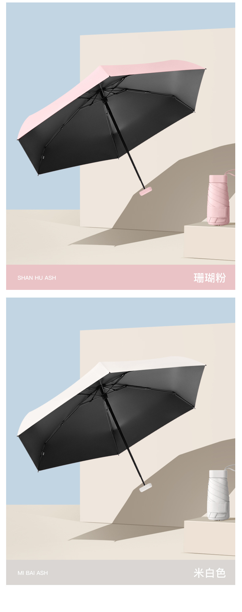 xq -- six fold card holder umbrella solid color -- creamy-white