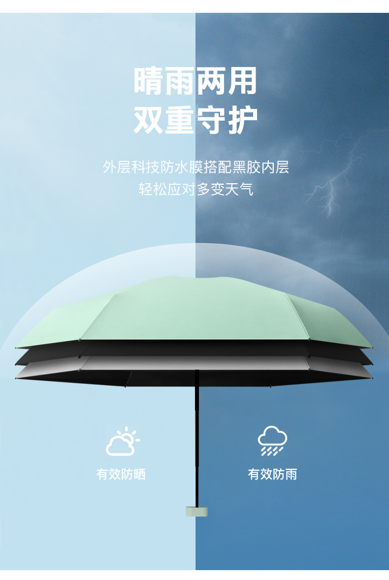 xq -- six fold card holder umbrella solid color -- mint green