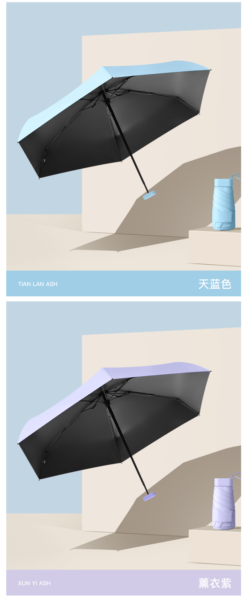xq -- six fold card holder umbrella solid color -- haze blue