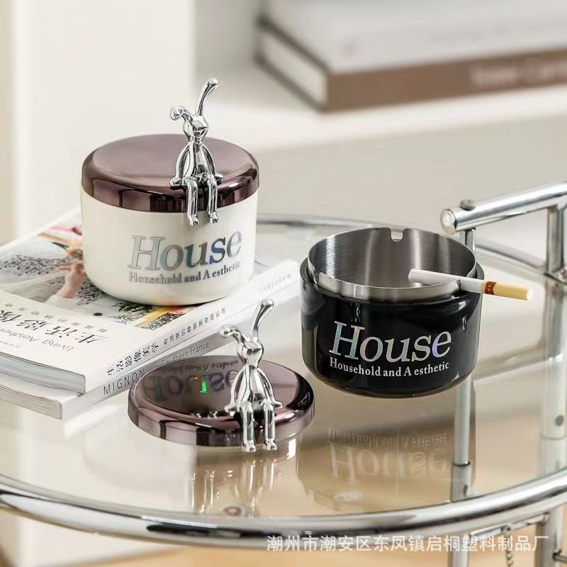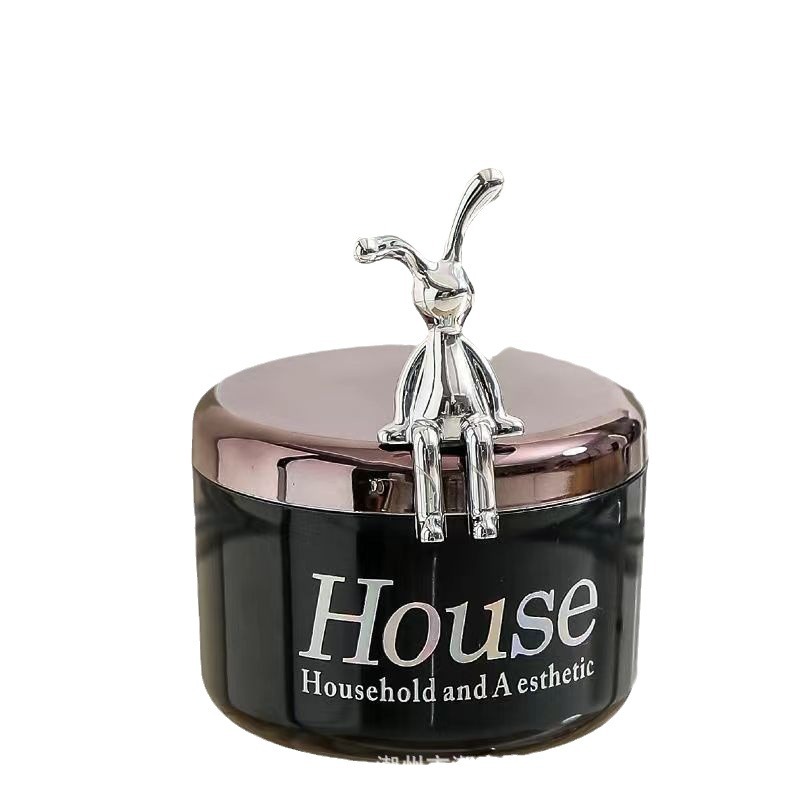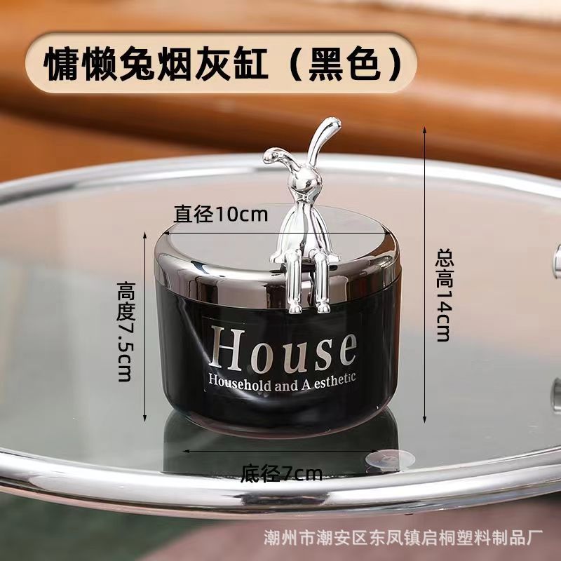sitting rabbit double-layer thickened ashtray-black [color box package]]