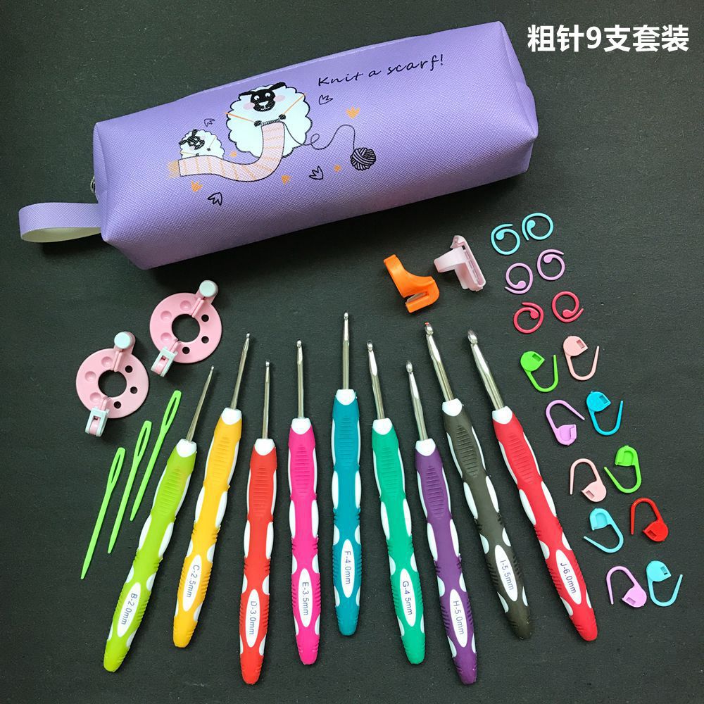 purple bag 18 pieces crochet hook set champagne