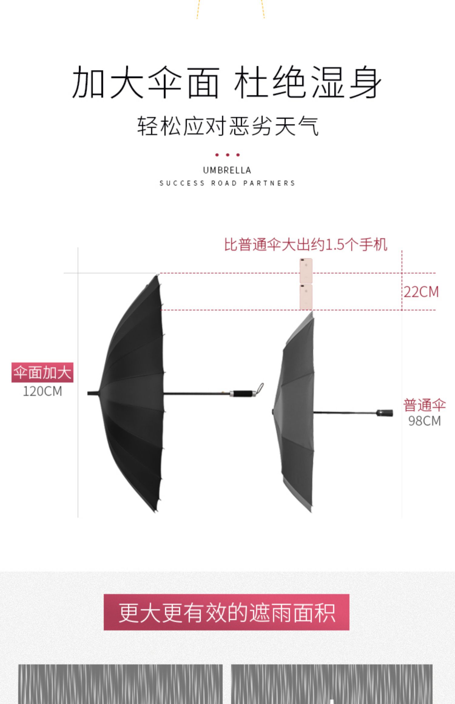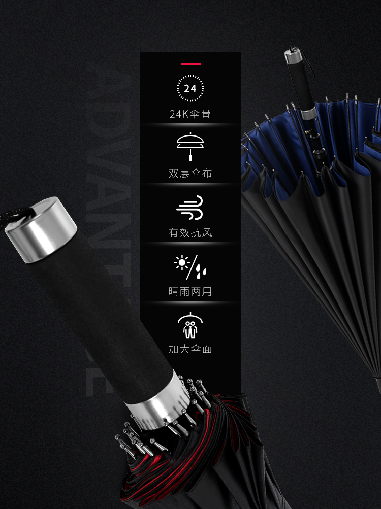 automatic double-layer rain-proof 24-bone-black umbrella 120cm