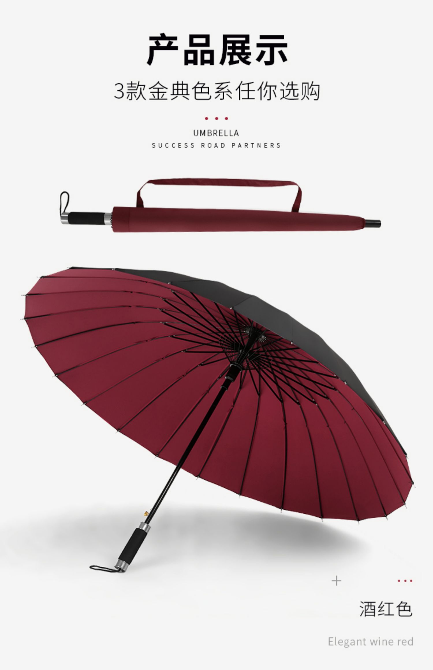 manual double-layer rain-proof 24 bone-wine red under umbrella 115cm
