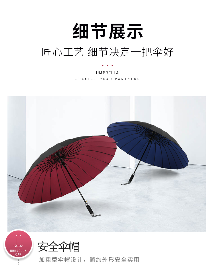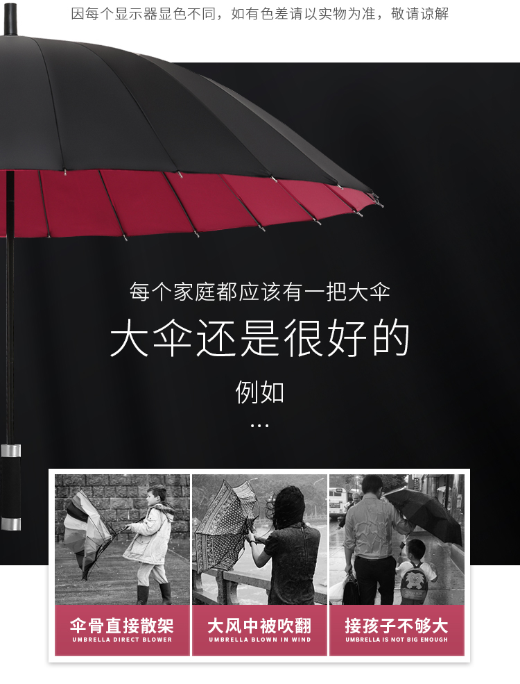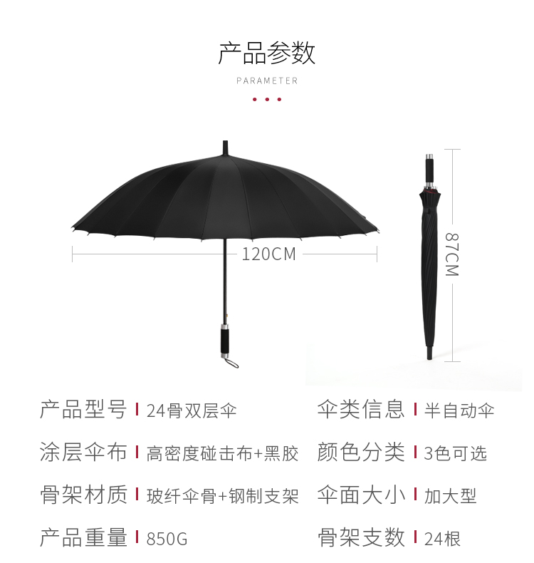 manual double-layer rain-proof 24 bone-black umbrella 115cm