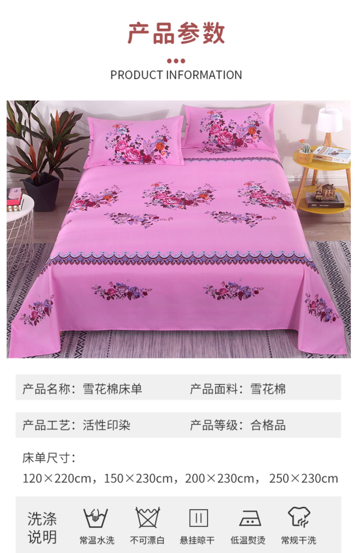 | 2*2.3 m bed sheet + pillowcase pair | CN¥ 49.95 | 699 piece available |