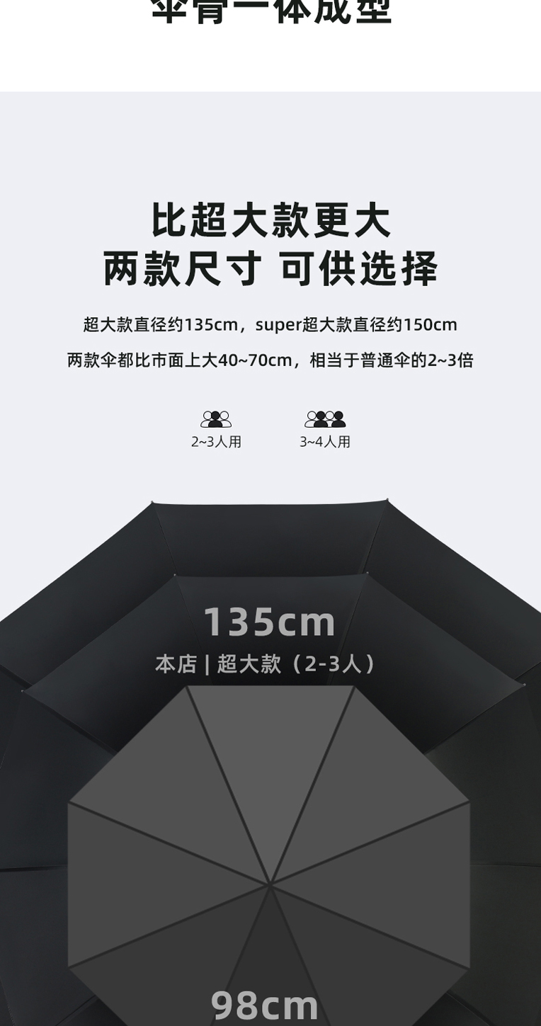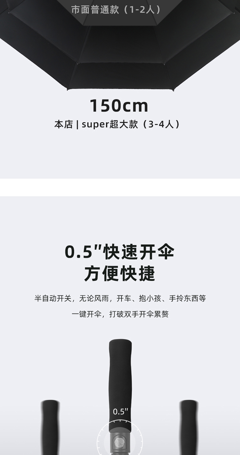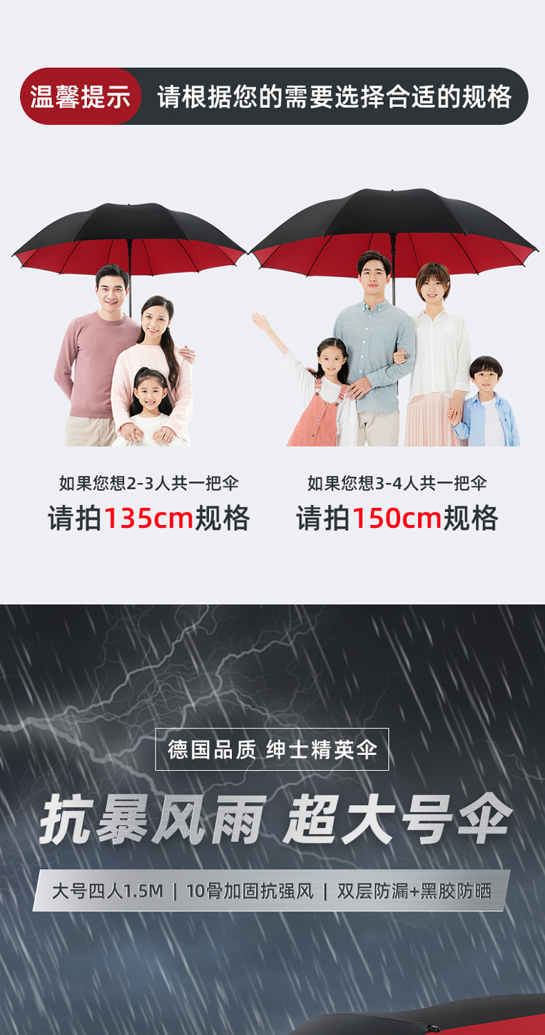 straight handle-10 bone double layer black in outside and inside [180cm] extra large 6-8 people