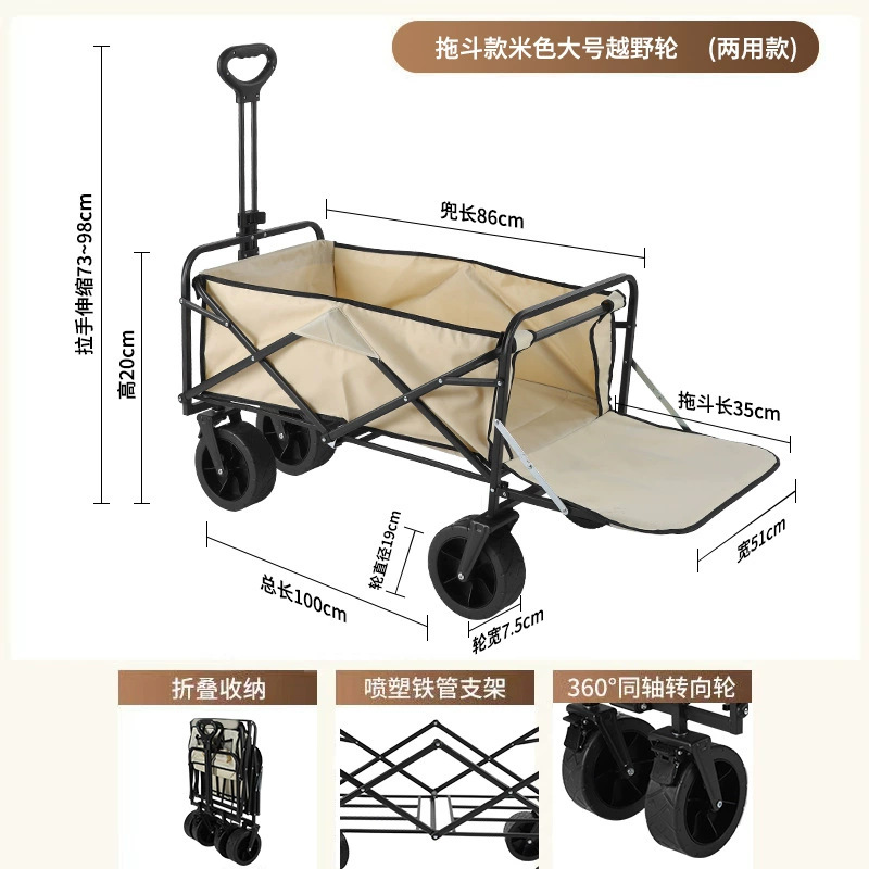 flip rear large 8-inch wide wheel khaki/double brake + folding table board