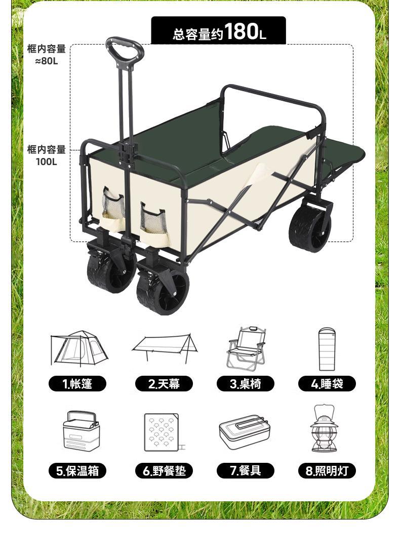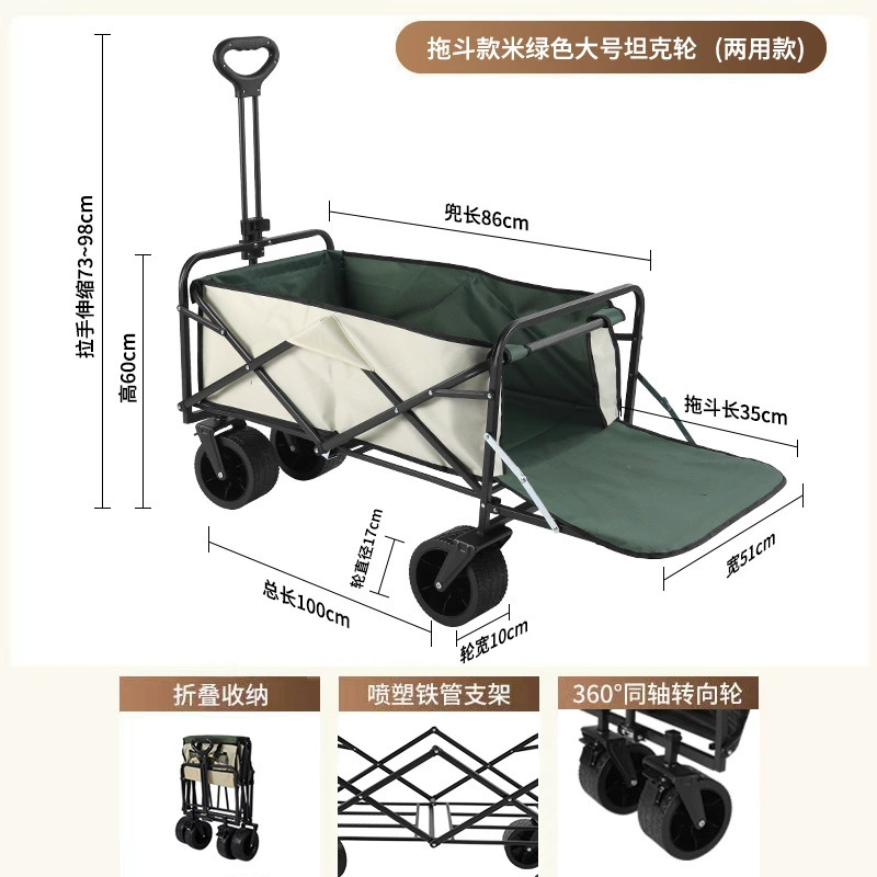 flip rear large 8-inch wide wheel beige green/double brake + folding table board