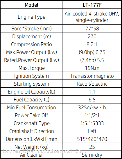 The LT-177F gasoline engine has superior quality.