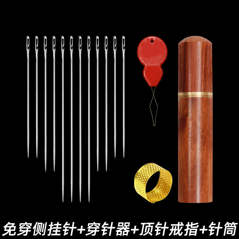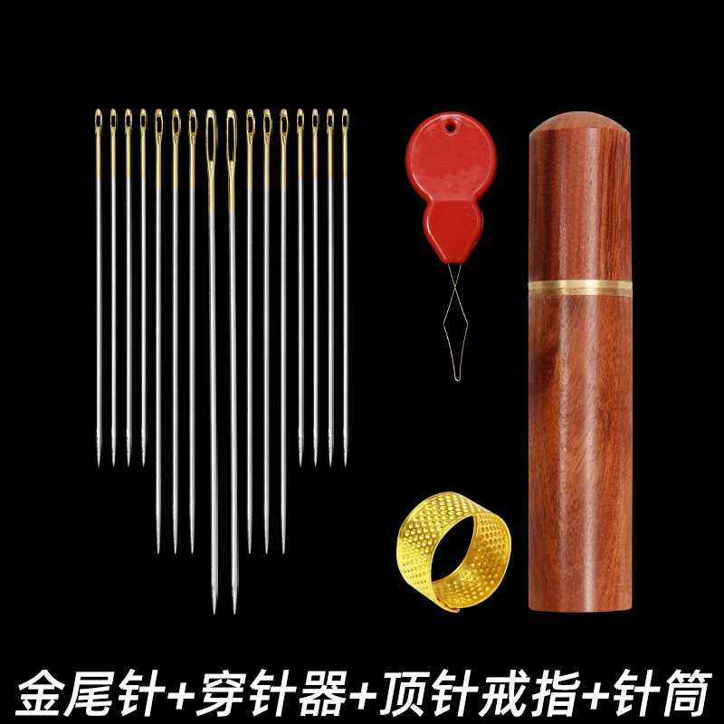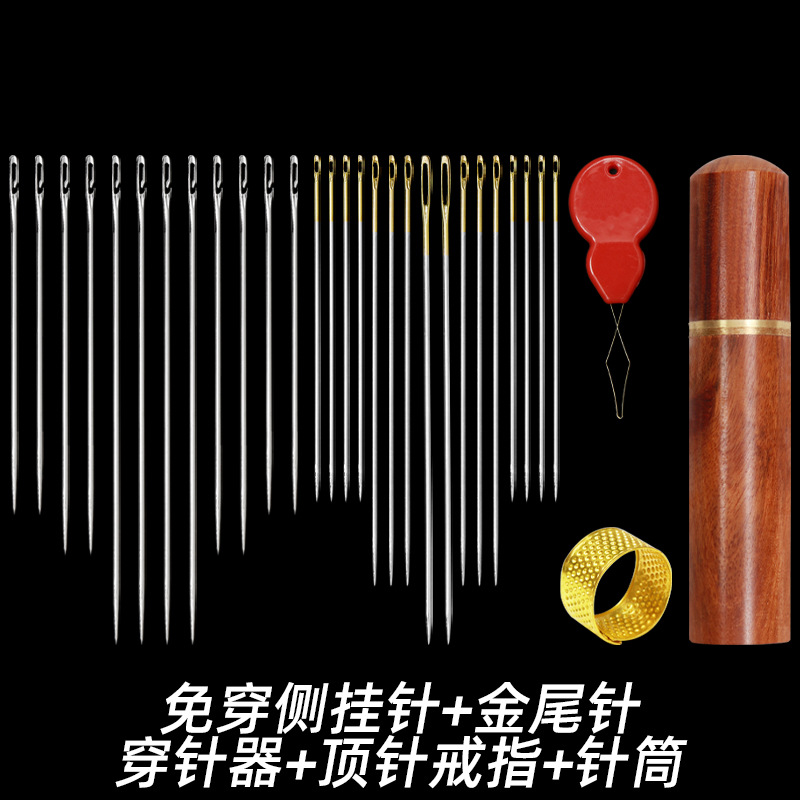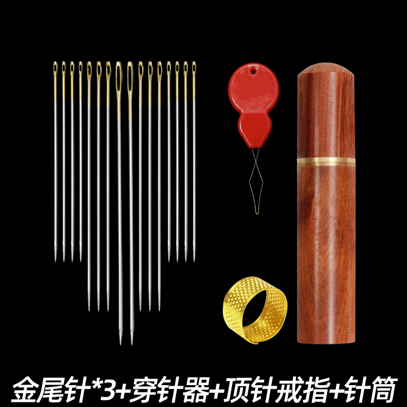 wear-free side hanging needle + gold tail needle + pear flower and wood needle barrel + thimble + needle-threader