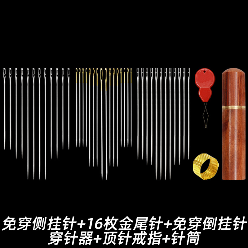 wear-free side hanging needle + wear-free upside down needle + gold tail needle + pear flower and wood syringe + thimble + needle-threader