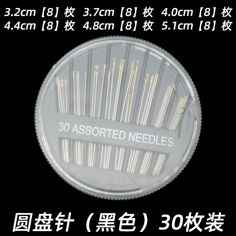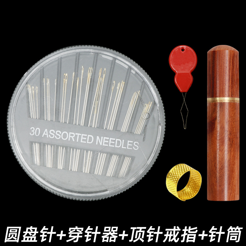 disc needle (30 pieces) + pear flower and wood needle barrel + thimble + needle-threader