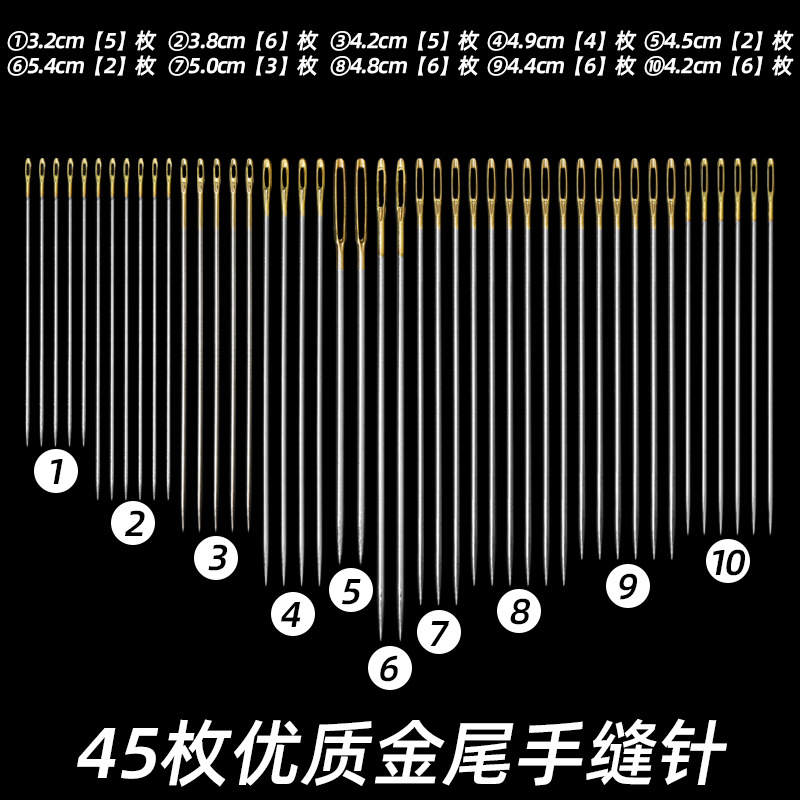 45 pieces of high-quality gold tail needles + pear flower and wood needles + thimble + needle-threader
