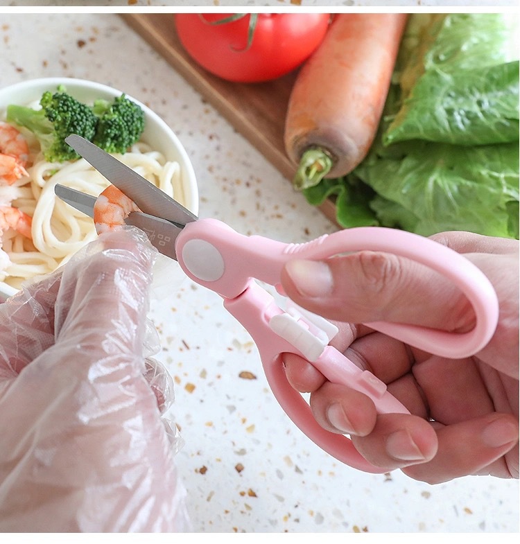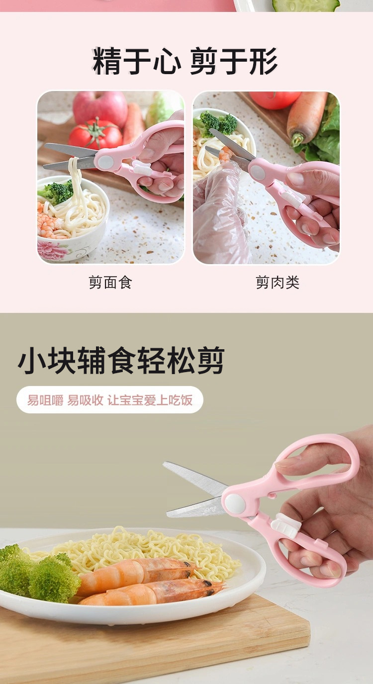 pink stainless steel feeding aid scissors + food clip [color box]]