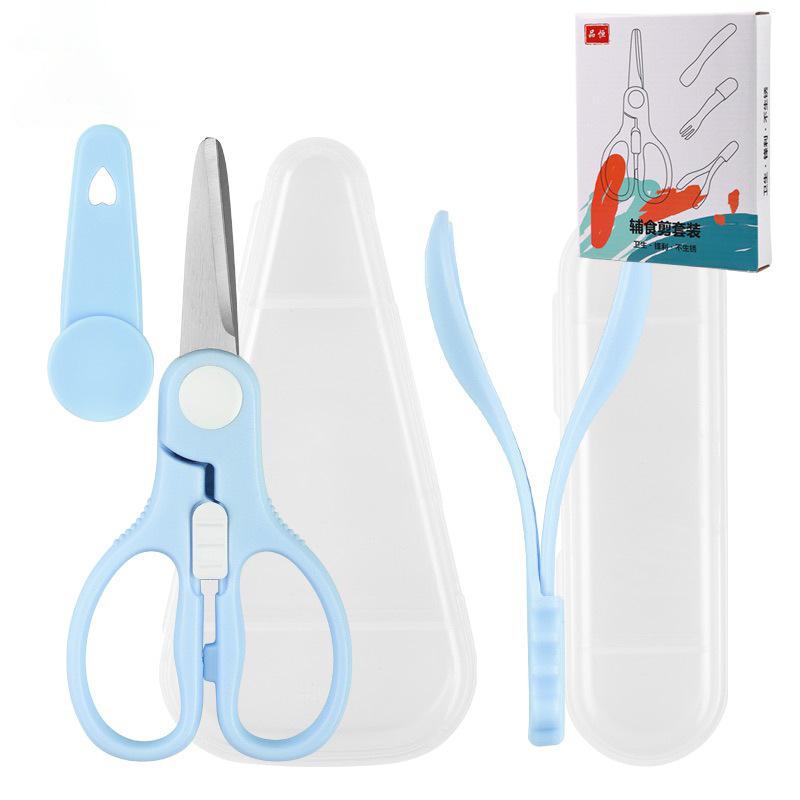 blue stainless steel feeding aid scissors + food clip [color box]]