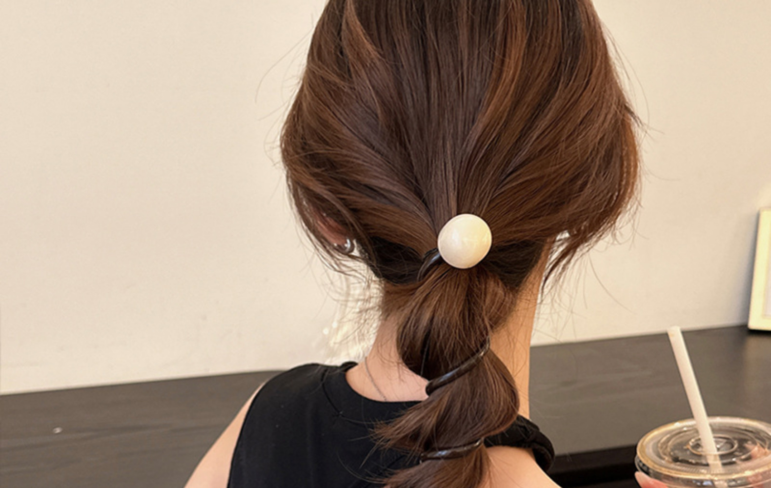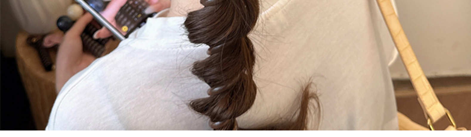 bq010# coffee phone line-milk white beads