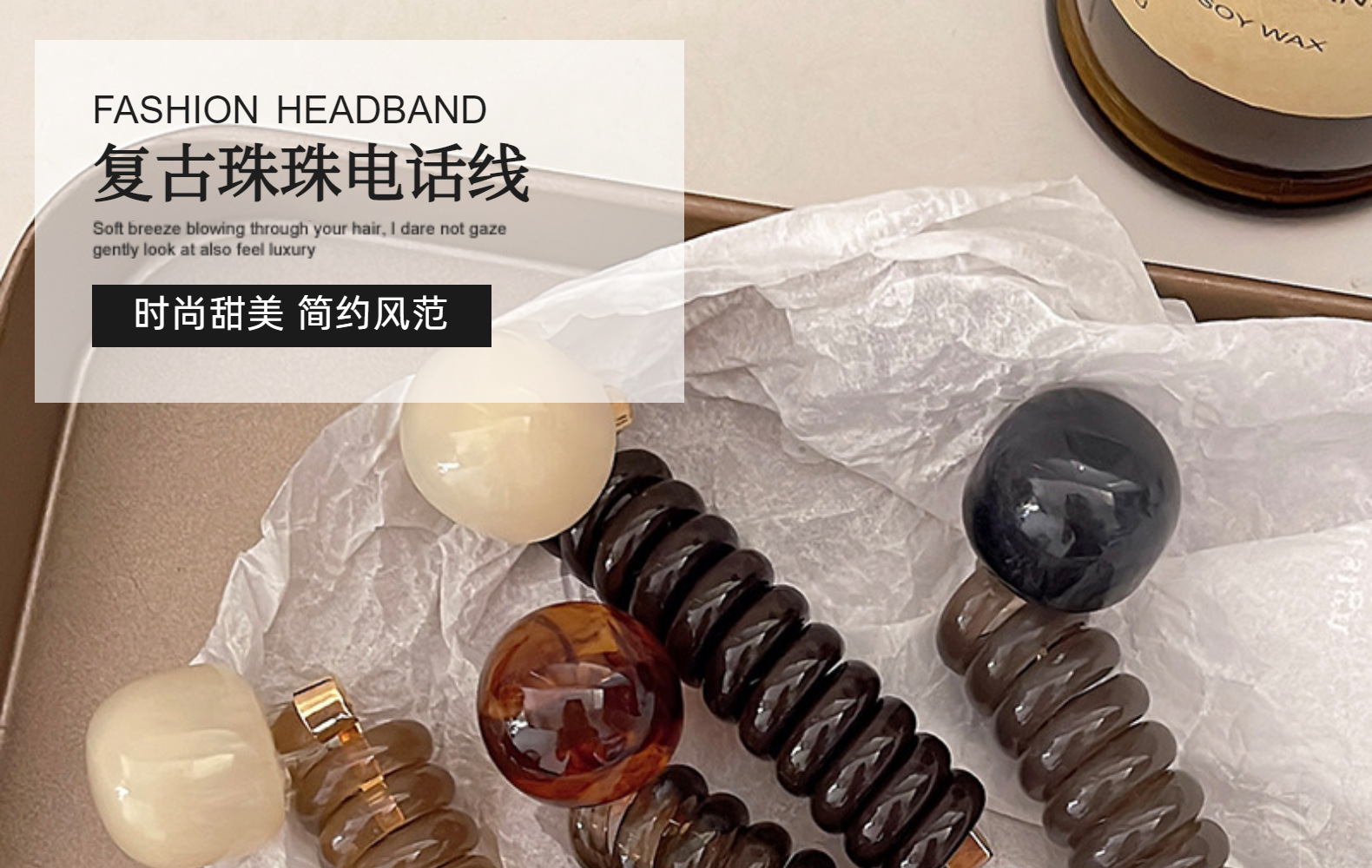 bq010# brown coffee telephone line-gray beads