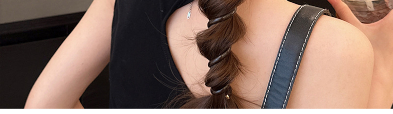 bq010# black telephone line-milk white beads